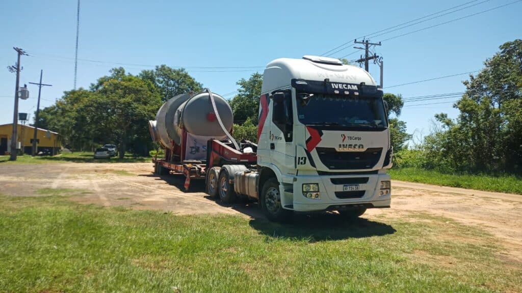 Se llevó a cabo el transporte internacional de un evaporador tubular, trasladado en carretones desde Santa Fe (Argentina) hasta Encarnación (Paraguay).